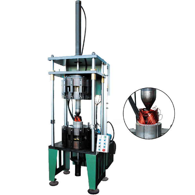 自动整形机采用液压传动、电气集成控制,采用内涨外缩机构,只需一次插线即可整形定子端部线圈的内径、外径和端部高度,并配有整体槽绝缘保护装置。