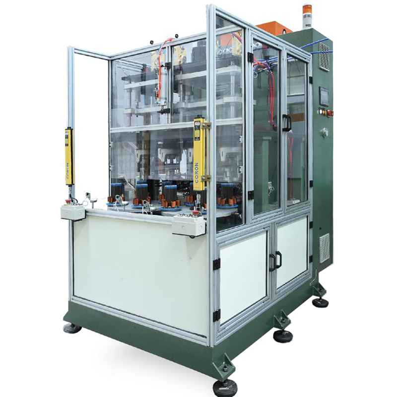 这是一台四头垂直绕组机,配备了机械气动和AC伺服系统,运动控制器系统。机器很容易更改参数,例如高速/低速和转弯。它赋予了动态转弯,实际转弯,设置,故障原因的显示功能,能够精确地将线圈转到叉状的飞轮上,并轻松地将线圈转移到线圈插入器上,并具有高工作效率的优势。