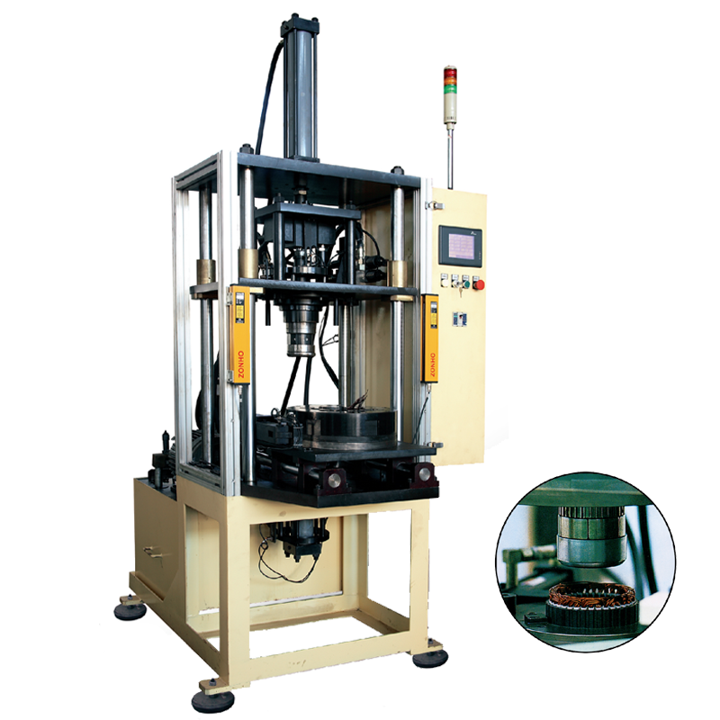 在液压传动和PLC集成控制下,自动成型机配备了人机控制界面。采用内胀外缩机构,插线后定子端部线圈的内径、外径、端部高度只需一次成型。它还具有槽楔扩展和压紧功能。还配备定子站自动行车和换向机构。主要适用于汽车发电机定子端部线圈的整形。